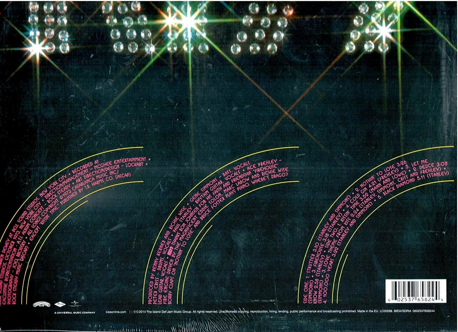 Kiss – первая студийная работа Kiss, выпущенная в 1974 году. Одна или несколько композиций с альбома обязательно входили в сет-лист группы. Обложка пластинки пародирует обложку альбома With The Beatles коллектива The Beatles. В 1977 году альбом получил золотой статус. Песня «Strutter» стала саундтреком к игре Grand Theft Auto: San Andreas и Guitar Hero.Kiss – рок-группа из США, образованная в Нью-Йорке в январе 1973 года. Коллектив является представителем глэм-рока, шок-рока и хард-рока. Группа известна сценическими макияжами ее членов, а также яркими и запоминающимися концертными выступлениями, которые сопровождаются различными пиротехническими эффектами. Коллектив имеет более 45 золотых и платиновых альбомов (данные 2010 года) и более 100 миллионов проданных копий пластинок.