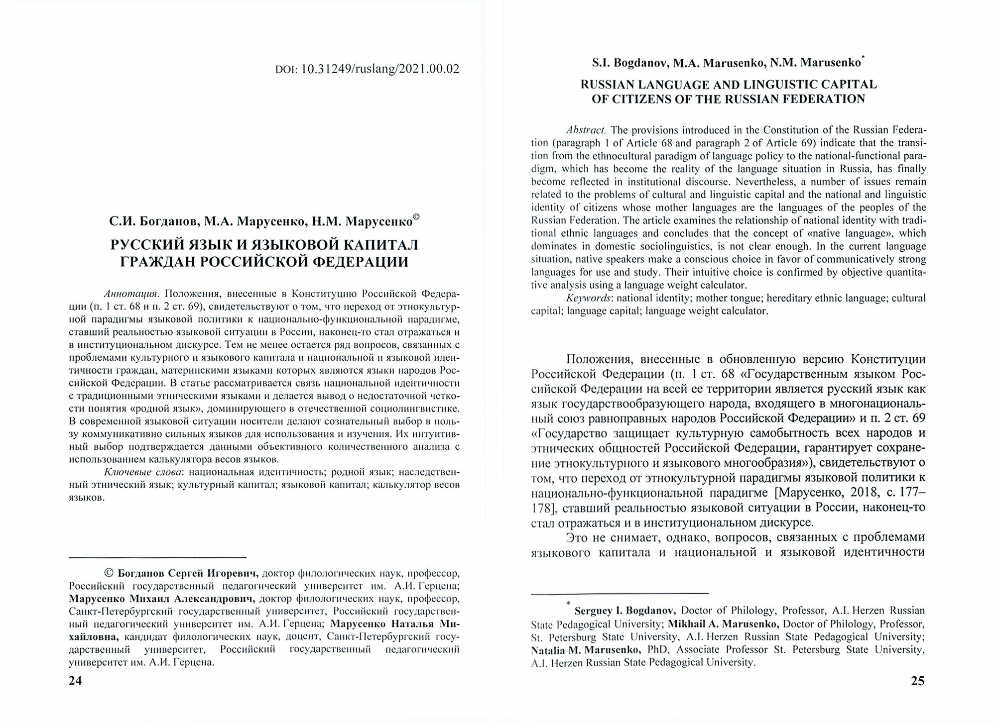 Русский язык в современном мире. Настоящее и будущее (Хухуни Георгий Теймуразович, Валуйцева Ирина Ивановна, Раренко М. Б.); ИНИОН РАН, 2021