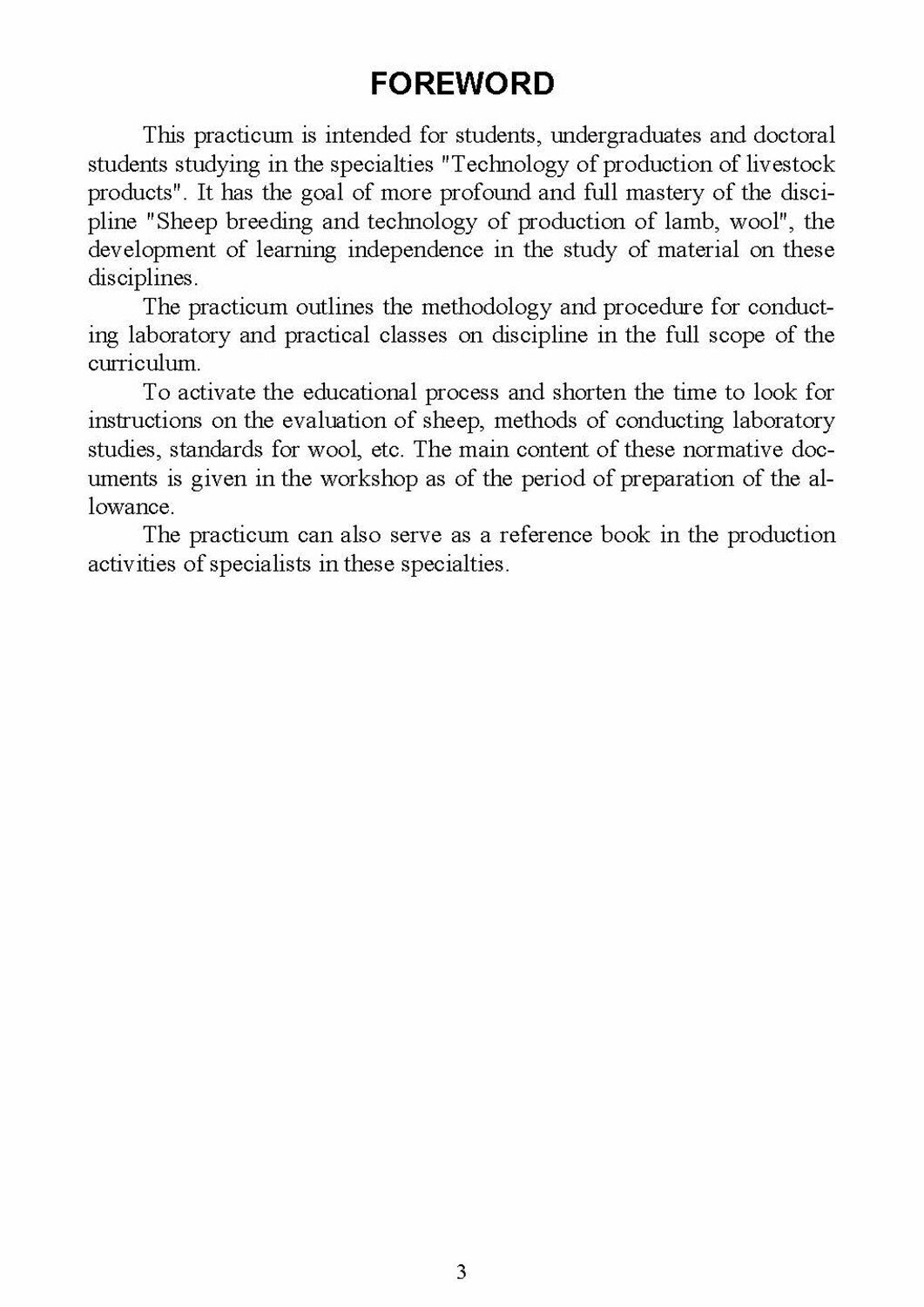 Содержание практикума соответствует дисциплине "Овцеводство" (специальность "Технология производства продуктов животноводства").