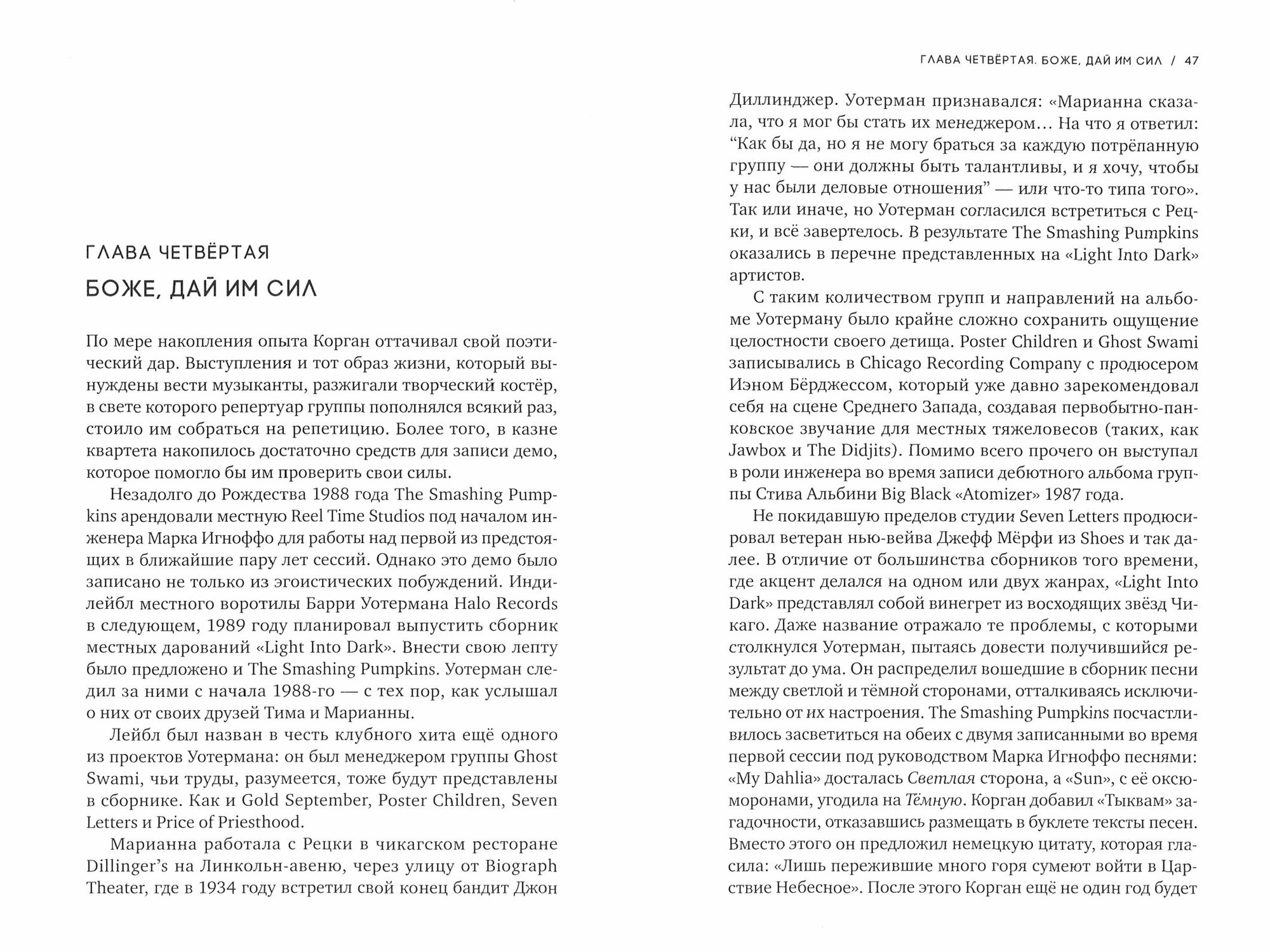 Написано довольно интересно, хотя порой излишняя подробность утомляет. Ну не волнует меня уже в 2023-м году, на каком ТВ-шоу был Корган в 1995-м и какие песни группа исполнила, если там не произошло ничего примечательного. Как и не интересна судьба звукозаписывающей студии, которая слегка связана с некоторыми участниками группы (о ней почти вся 18-я глава, которую можно смело пропускать). Это занудство конечно подпортило впечатление от книги.