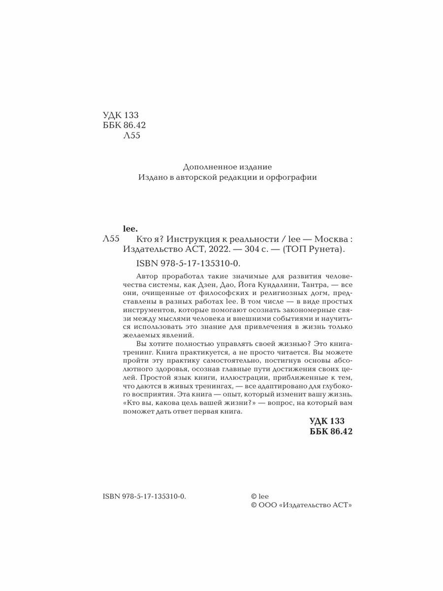 Кто я? Инструкция к реальности (lee); ИЗДАТЕЛЬСТВО "АСТ", 2021