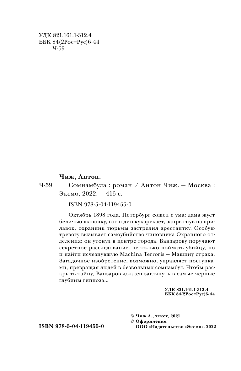 Книга: Сомнамбула (Антон Чиж); Эксмо, Редакция 1, 2021
