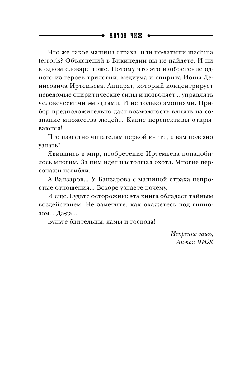 | Серия | Исторические детективы Антона Чижа. Цикл «Машина страха» |