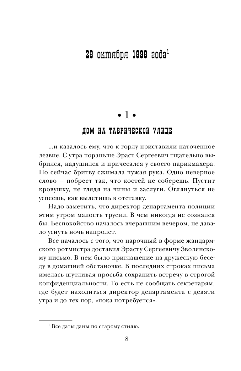 Отличный исторический детектив, который даже стилистически оформлен под старину. Главный герой книги, Ванзаров, вынужден вести свое расследование по поиску машины страха среди какого-то безумия, и чтобы довести дело до конца, герой готов пойти на любой риск. Мне понравился сюжет и язык автора. Думаю над тем, чтобы прочесть и другие книги из этой серии.