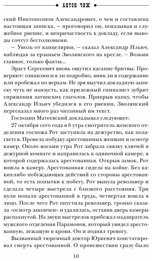 Я большой фанат русских исторических детективов, поэтому не смогла пройти мимо новой книги Антона Чижа. Я ожидала от нее чего-то в стиле стимпанк из-за наличия машины в сюжете, но даже несмотря на то, что получила не совсем то, я довольна. Я могу даже назвать этот детектив приключенческим, ведь Ванзаров проходит через огромное количество испытаний перед встречей с ответом. Поставлю на полку с другими понравившимися представителями жанра!