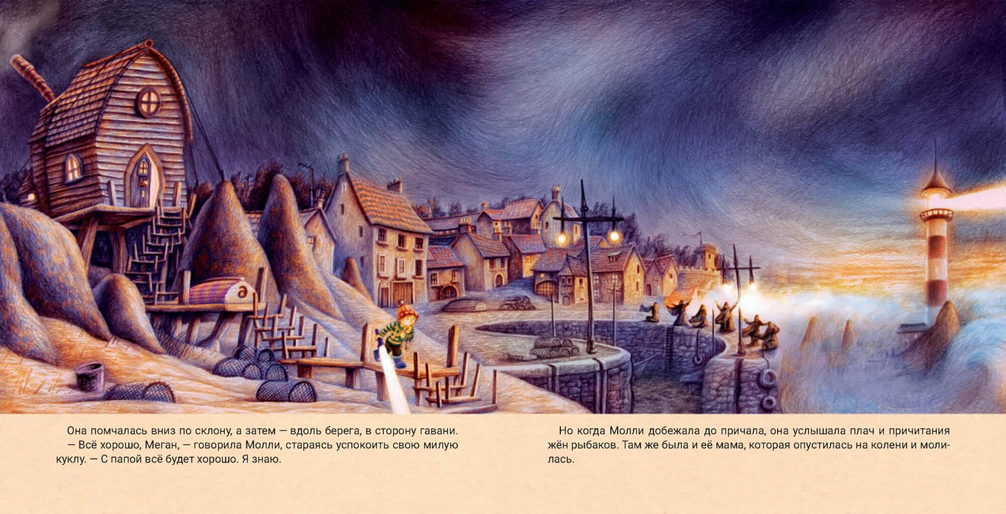 Трогательная книга о девочке Молли, папа которой ушёл в море на рыбалку и из-за шторма долго не возвращался.