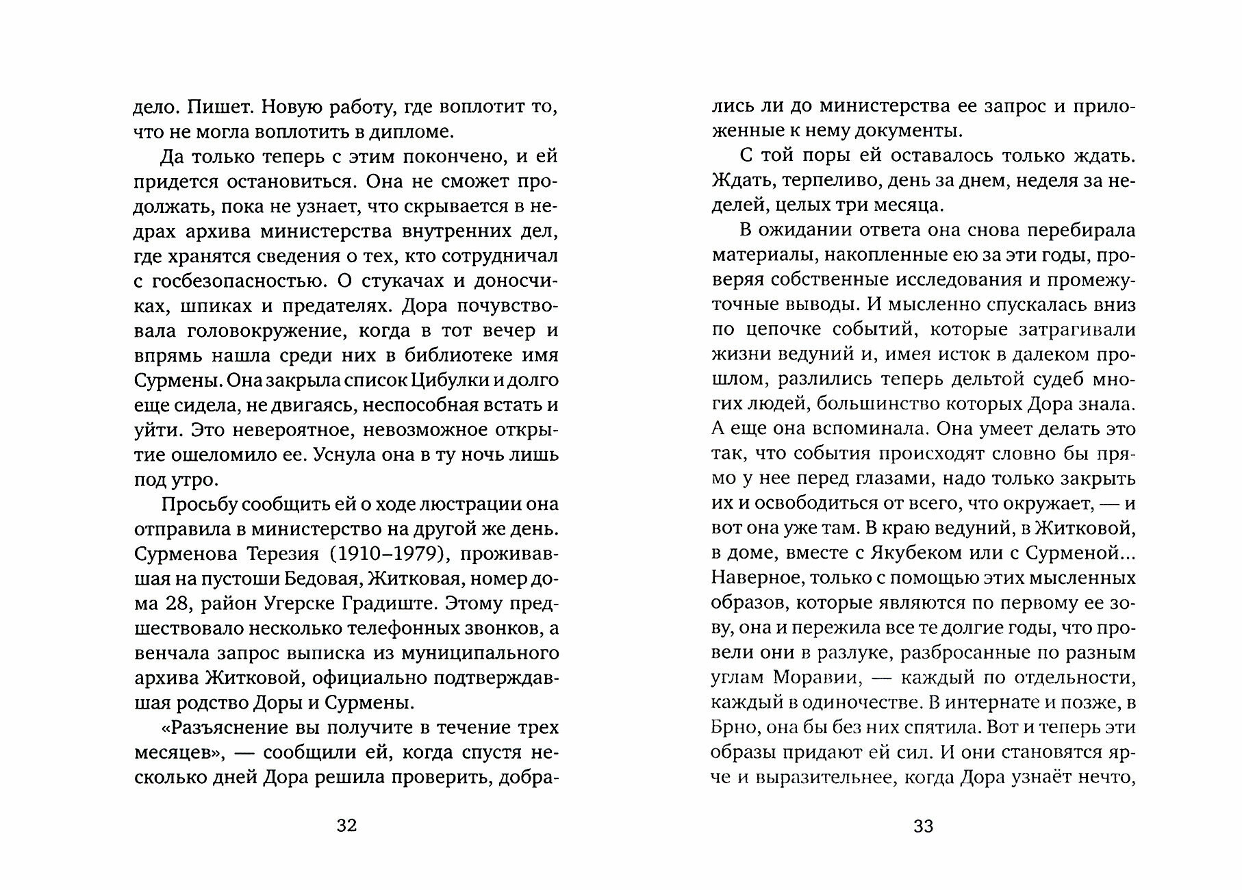 Катержине Тучковой, самой известной современной чешской писательнице, удалось мастерски воссоздать завораживающую атмосферу удаленных от цивилизации селений и вписать события романа в исторический контекст, ведь прошлое неотделимо и от настоящего, и от будущего.