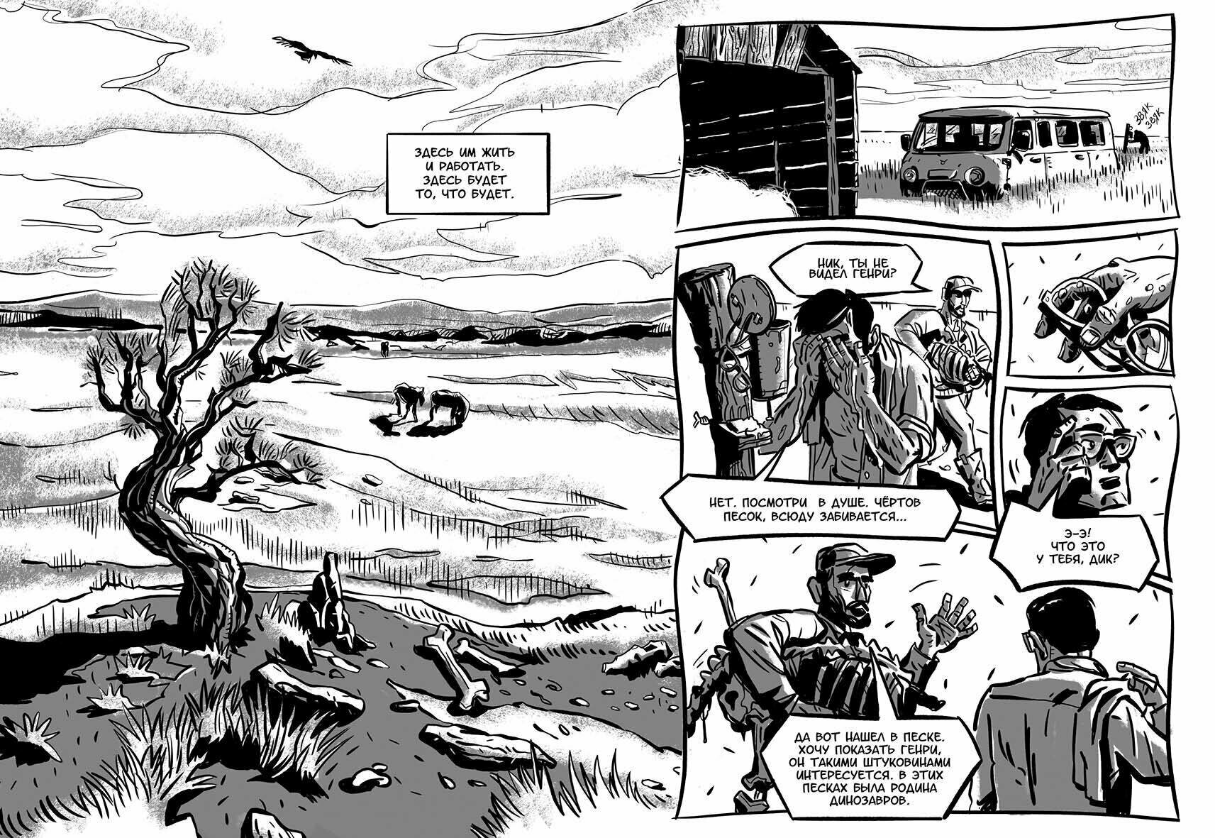 Комикс является адаптацией Tian-Shan - Gobi Assimilation от достаточно известного на западе писателя Джеффа Вандермеера. К сожалению, сам рассказ на русский не переводился, но теперь появилась возможность познакомиться с ним в таком виде.