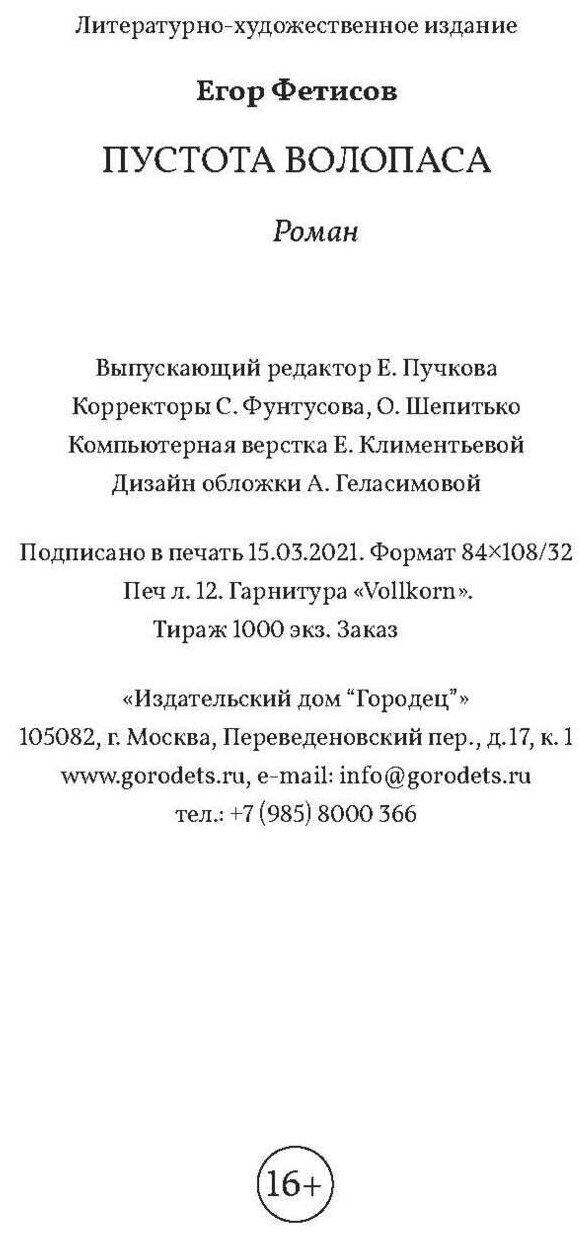 Книга: Пустота Волопаса (Егор Фетисов); Издательский дом «Городец», 2021