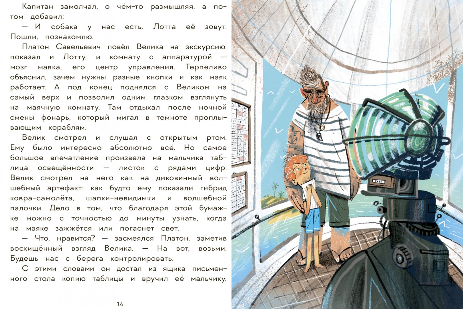 Екатерина Шелеметьева первой главой нас объединяет с героем, ведь у каждого есть что-то, что его досадует в себе, вот Велика его имя, разве это серьезное имя? У кого-то несерьезные уши, нос или даже веснушки! Поэтому мы легко, хоть большие, хоть маленькие, понимаем Велика и сопереживаем ему. Поэтому с радостью узнаем, что у кого-то был такой случай и это не помешало ему стать серьезным, не помешала стать для всех в начале "маленьким капитаном", а потом Велимиром Сергеевичем Котовым. И примечательно, что о серьезности имени мы узнаем в конце книжки, пройдя с мальчиком весь путь до его мечты стать капитаном) И на этом пути мы встречаем главных людей, которые и помогают Велику стать именно человеком, который и станет капитаном, который поймет важность не просто мечты, а работы, которую он выбрал.