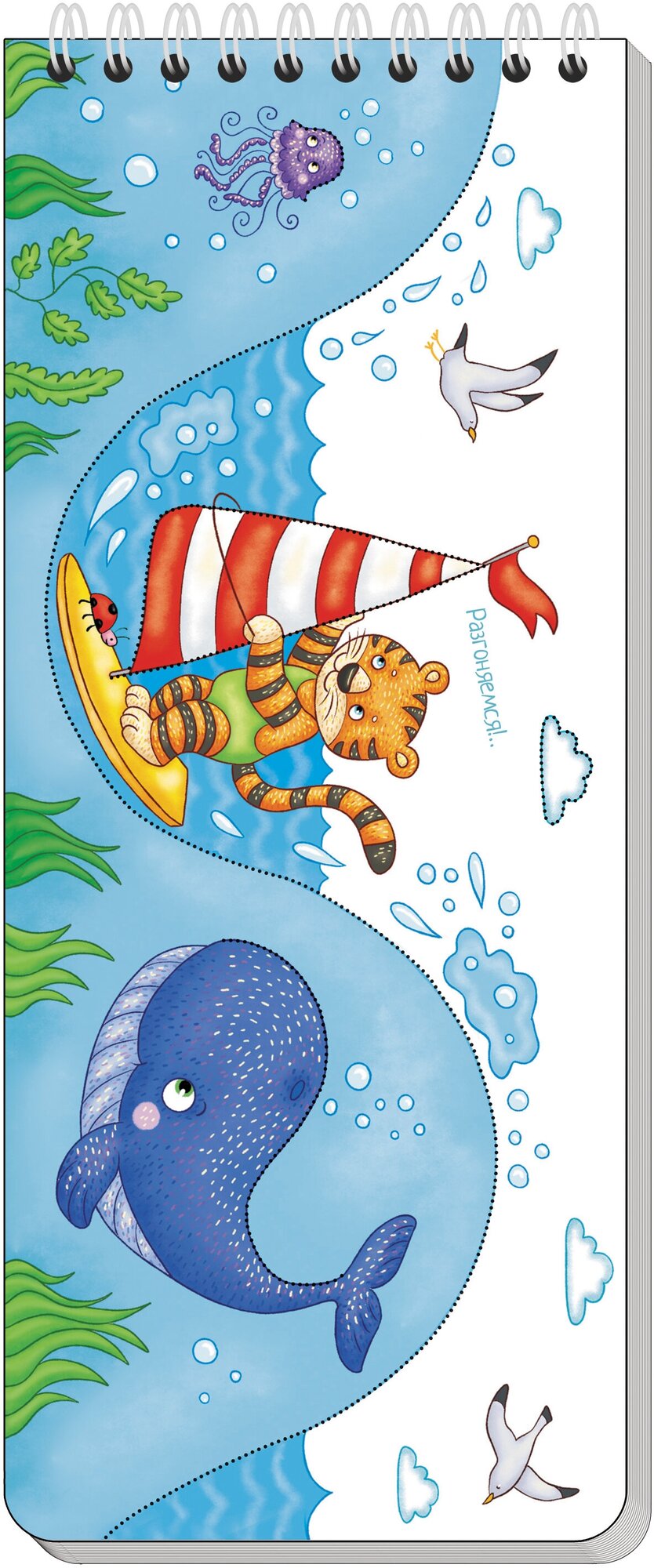 Яркий игровой тренажёр для развития речи и подготовки руки к письму. Каждый разворот — это отдельная сюжетная картинка, по которой можно сочинить целую историю и обогатить словарный запас. А ещё ребёнок будет обводить прямые и волнистые линии, тем самым дорисовывая сюжетные картинки. Эта яркая многоразовая пропись с красочными иллюстрациями станет любимым пособием малыша. Учимся играя!