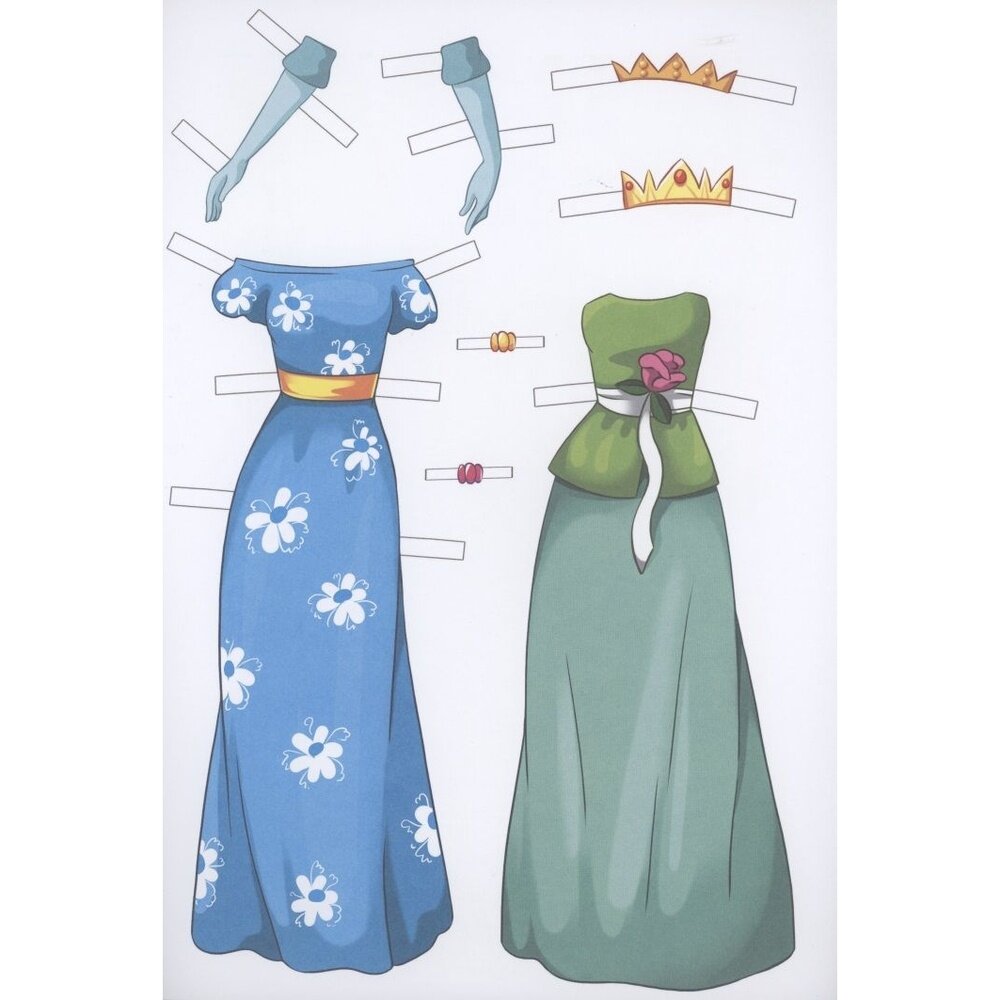 Книга отличная! 10 плотных листов с нарядами для любимой сказочной героини Белоснежки и принца. Книга большого формата - как листы А4, сделана удобно для вырезания детьми. Моим внучкам очень нравиться не только игра с наряжалками, но и сам процесс вырезания и создания разных вариантов и комплектов одежды. А ещё они сами рисуют свои придуманные наряды для готовых кукол, и рисуют других кукол по подобию этих!