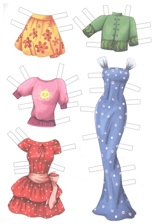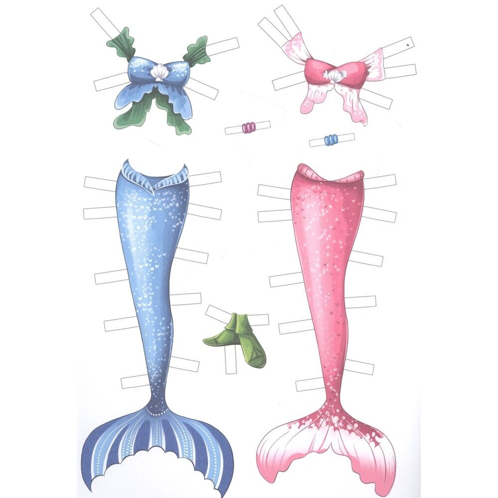 Набор просто волшебный!В книге две разные куколки,их можно нарядить прекрасными русалками или примерить обычные наряды.Одежду и фигурки куколок нужно вырезать самим,платья и юбки крепятся на кукол с помощью белых клапанов.Печать яркая,четкая,обложка из картона,внутри довольно плотные листы.Куклы могут меняться между собой одеждой,есть прекрасная возможность рисовать наряды для куколок самим.