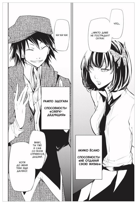 Бесподобная манга, наконец-то издана в России! Идея в том, что прославленные писатели разных эпох и наций, наделённые суперспособностями будут спасать Йокогаму от иностранных эсперов и как-то враждовать между собой. Интересный сюжет, симпатичная рисовка, живые персонажи.