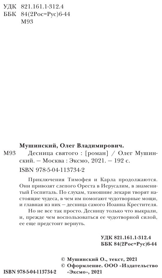 Книга: Десница святого (Мушинский Олег Владимирович); ООО "Издательство "Эксмо", 2021