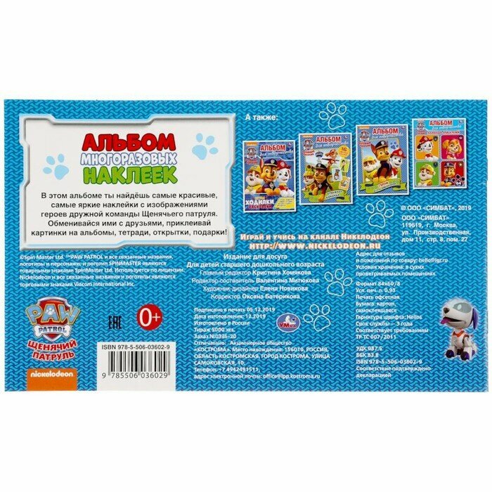 Сервис сравнения цен СкидкаГИД предлагает сравнить цены на товар «Книга: "УМКА". ЩЕНЯЧИЙ ПАТРУЛЬ (АЛЬБОМ НАКЛЕЕК МАЛЫЙ ФОРМАТ). ФОРМАТ: 260Х155 ММ. 4 СТР. НАКЛЕЕК в кор.50шт (Митюкова В. - редактор-составитель); Умка, 2020»