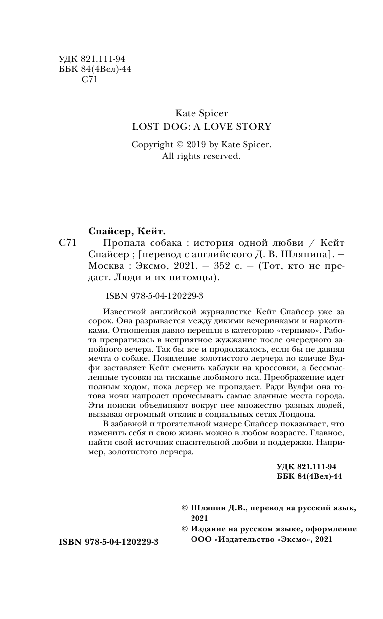 Пропала собака. История одной любви (Кейт Спайсер); Эксмо, Редакция 1, 2021