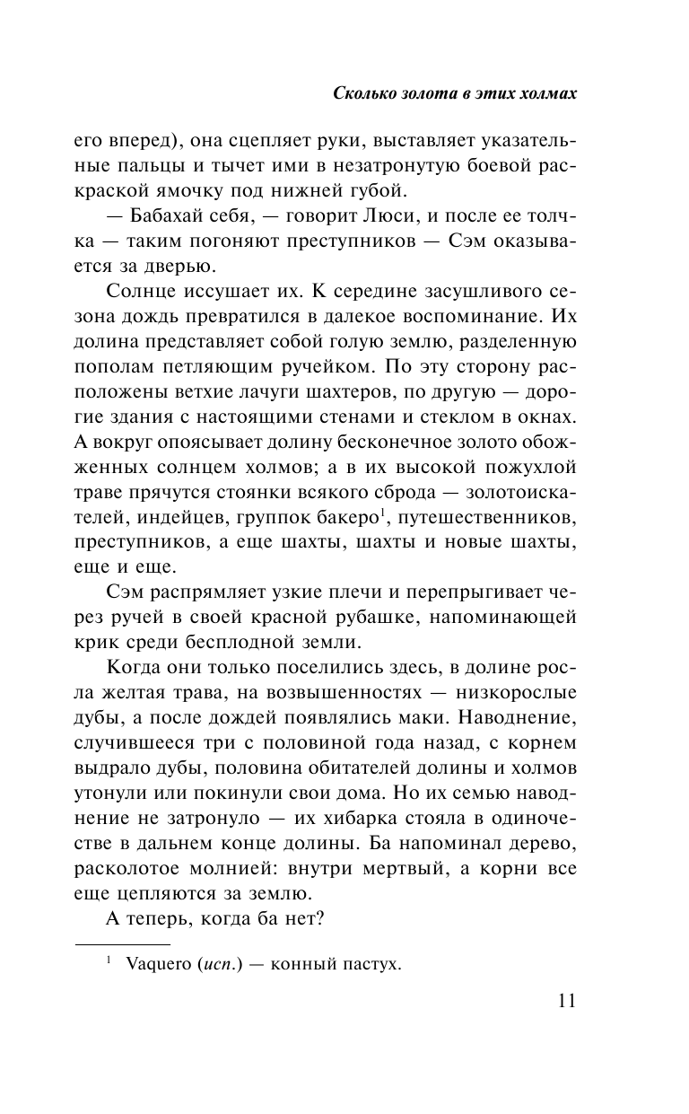 Книга «Сколько золота в этих холмах» сначала читалась очень медленно. Я боялась, что так будет и дальше, и я не получу удовольствия. Но незаметно повествование меня увлекло, особенно когда началась история Ба. С этого момента я не могла оторваться. По сути это такой приключенческий вестерн о выживании двух детей китайских иммигрантов на Диком Западе США. Много захватывающих тем, много увлекательных описаний. В целом книга понравилась и оставила приятное впечатление. Это поэтическая история о том, что же такое дом и где его искать.