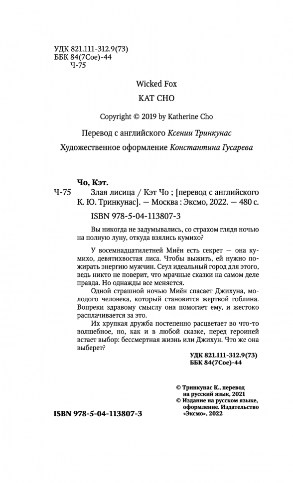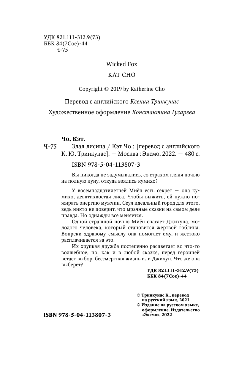 Книга: Злая лисица (Кэт Чо); Эксмо, Like Book, Редакция 1, 2022