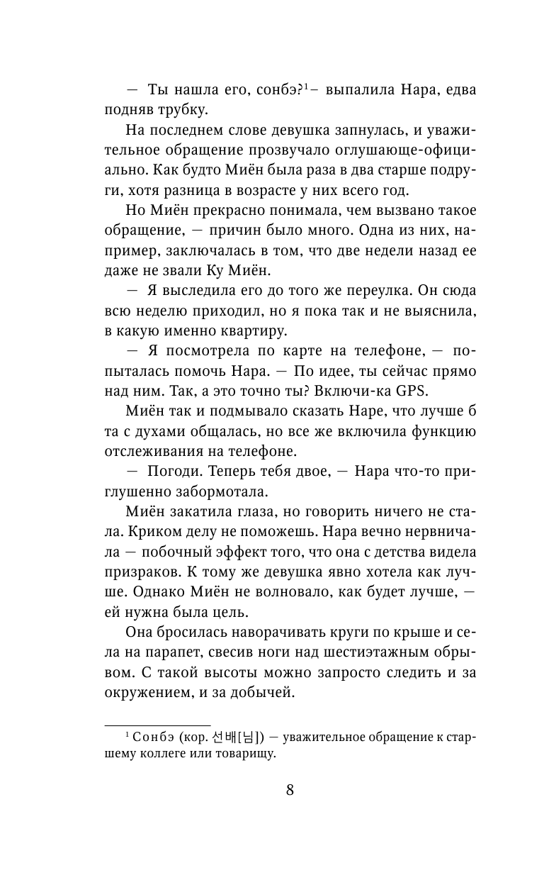 Очень интересная книга, где сочетается сразу множество интересных ходов: необычный для русских корейский сеттинг, вписанные в повествования реалии корейских подростков, вроде просмотра сериалов, компьютерные игры, разговоры по телефону и прослушивание музыки. Особенно интересно, как вписаны в повествование мифологические мотивы, популярные по всему свету, поданные как сказка, но несущие назидательный посыл.