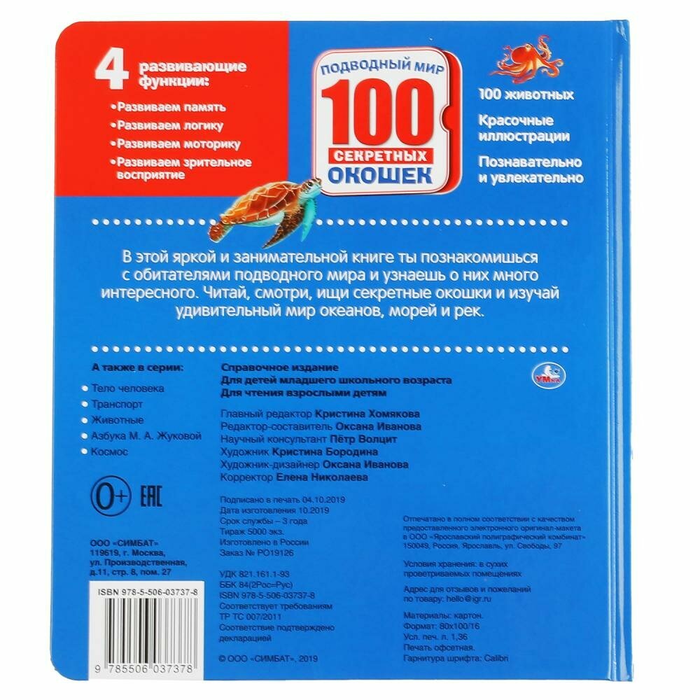 "УМКА". ПОДВОДНЫЙ МИР. ЭНЦИКЛОПЕДИЯ 100 СЕКРЕТНЫХ ОКОШЕК. 195Х215 ММ. 14 КАРТ. СТР. в кор.10шт (О. Иванова); Умка, 2020