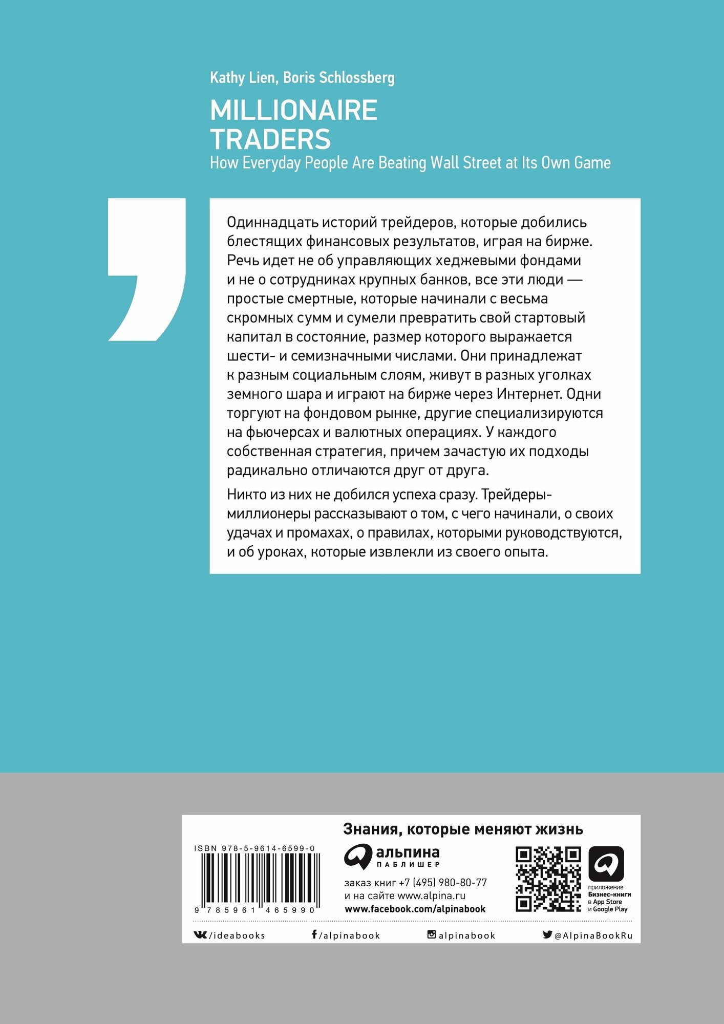 Трейдеры-миллионеры: Как переиграть профессионалов Уолл-стрит на их собственном поле / Кетти Лин, Борис Шлоссберг; Пер. с англ. — М.: Альпина ПРО, 2022. — 285 с.