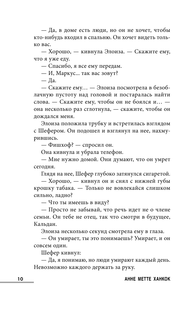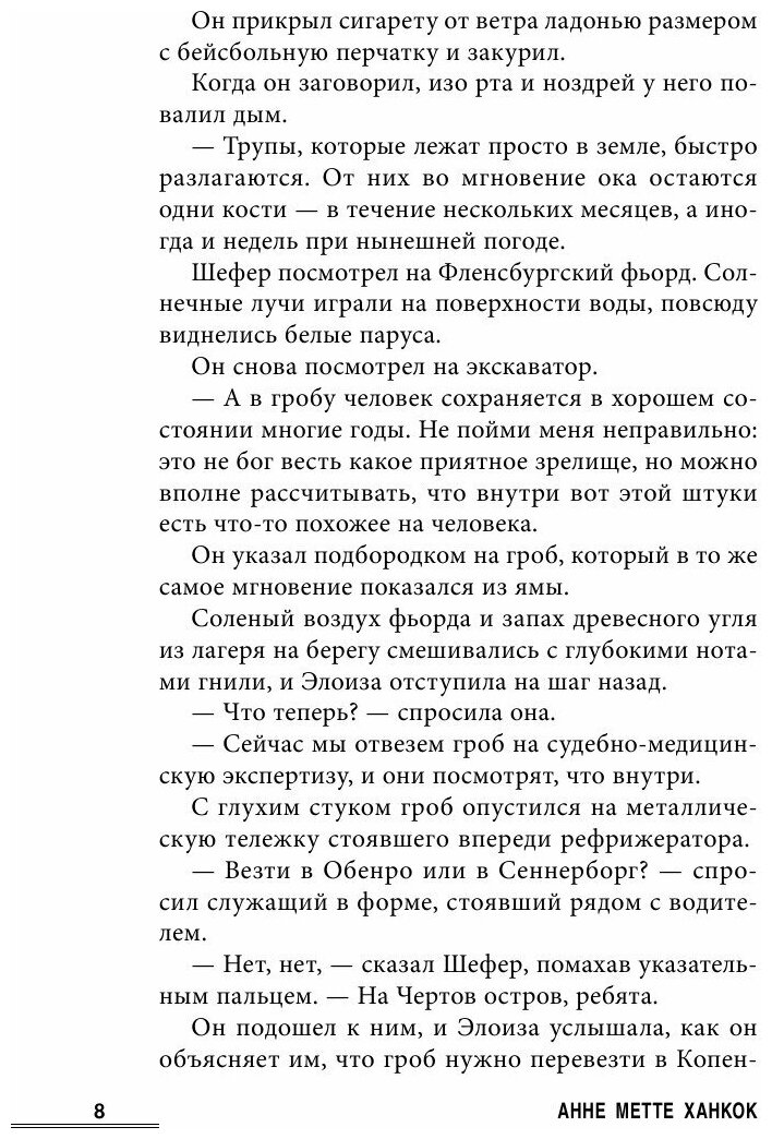 Мне книга понравилась. Настоящий скандинавский триллер, захватывающий и мрачный. Открыла для себя автора в начале года и прочитала запоем первые две книги, вот теперь дождалась выхода третьей. Как обычно, автор поднимает в книге социальные вопросы, показывая, что интересует обычных жителей Дании. Ну и радует встреча с уже полюбившимися главными героями Элоизой и Шефером и его женой.