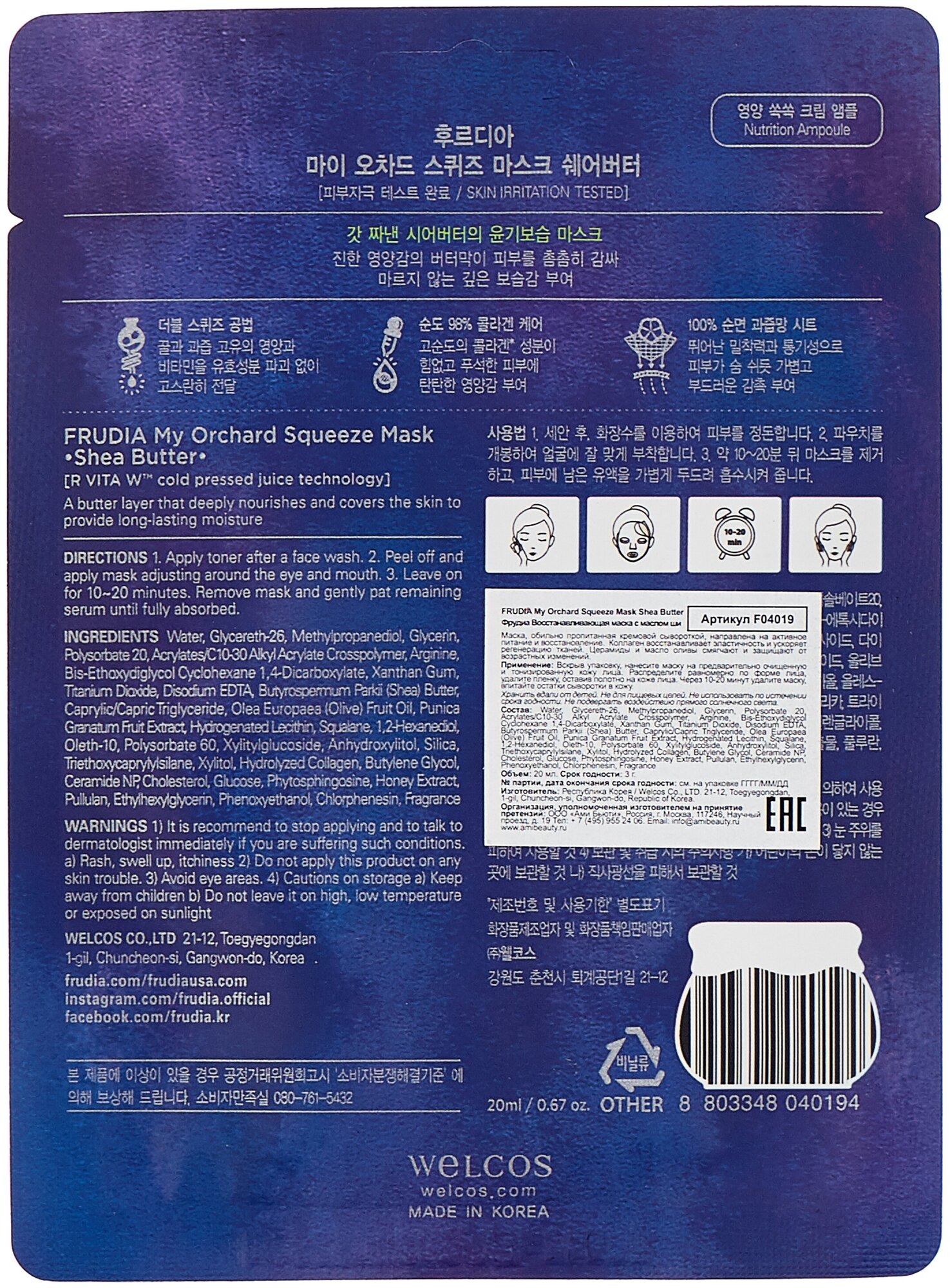 Маска восстанавливающая с маслом ши Frudia/Фрудия 20мл WelcosCo., LTD. KR (1439088)