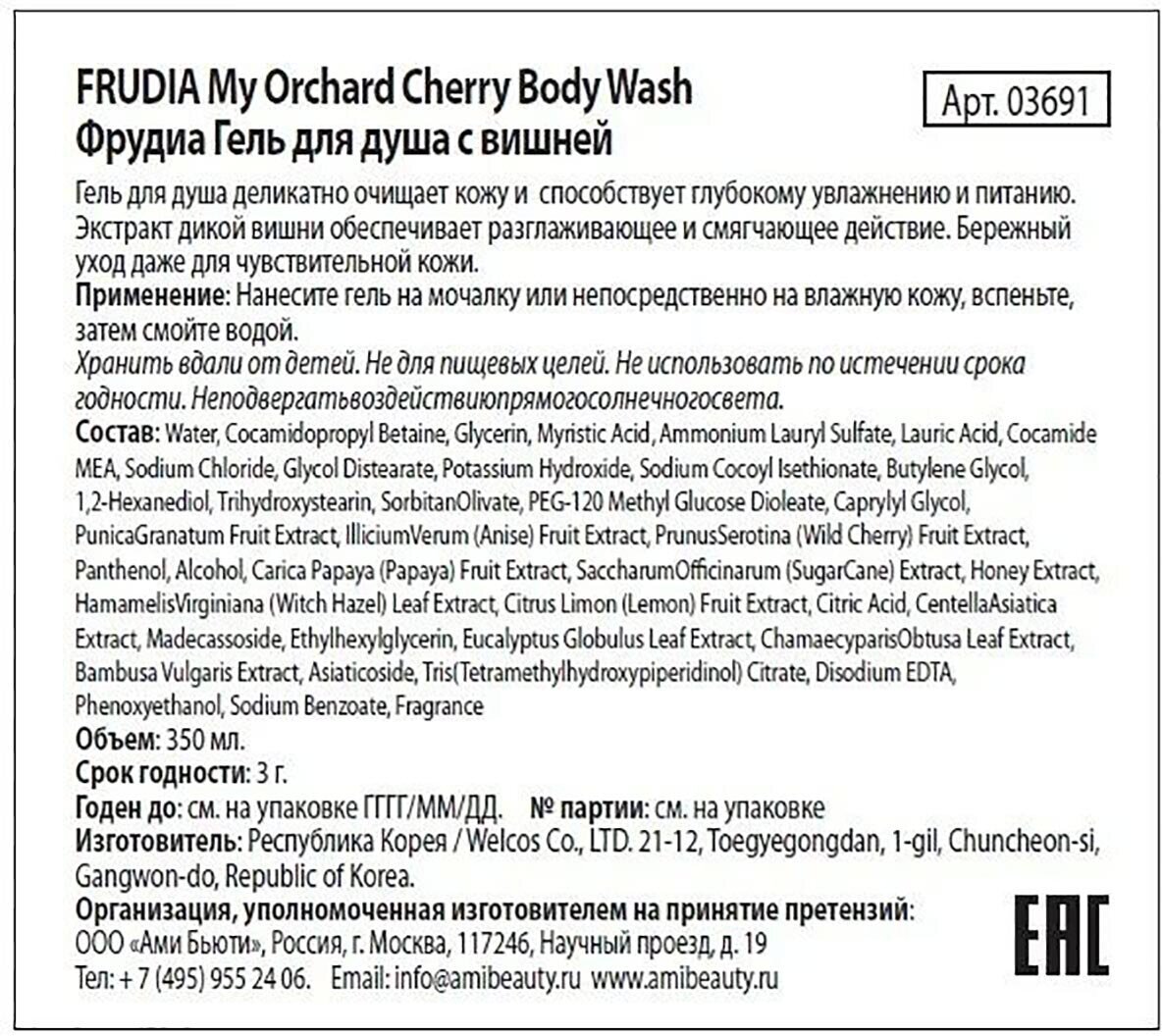 Гель для душа с вишней Frudia/Фрудия 350мл WelcosCo., LTD. KR (1439088)