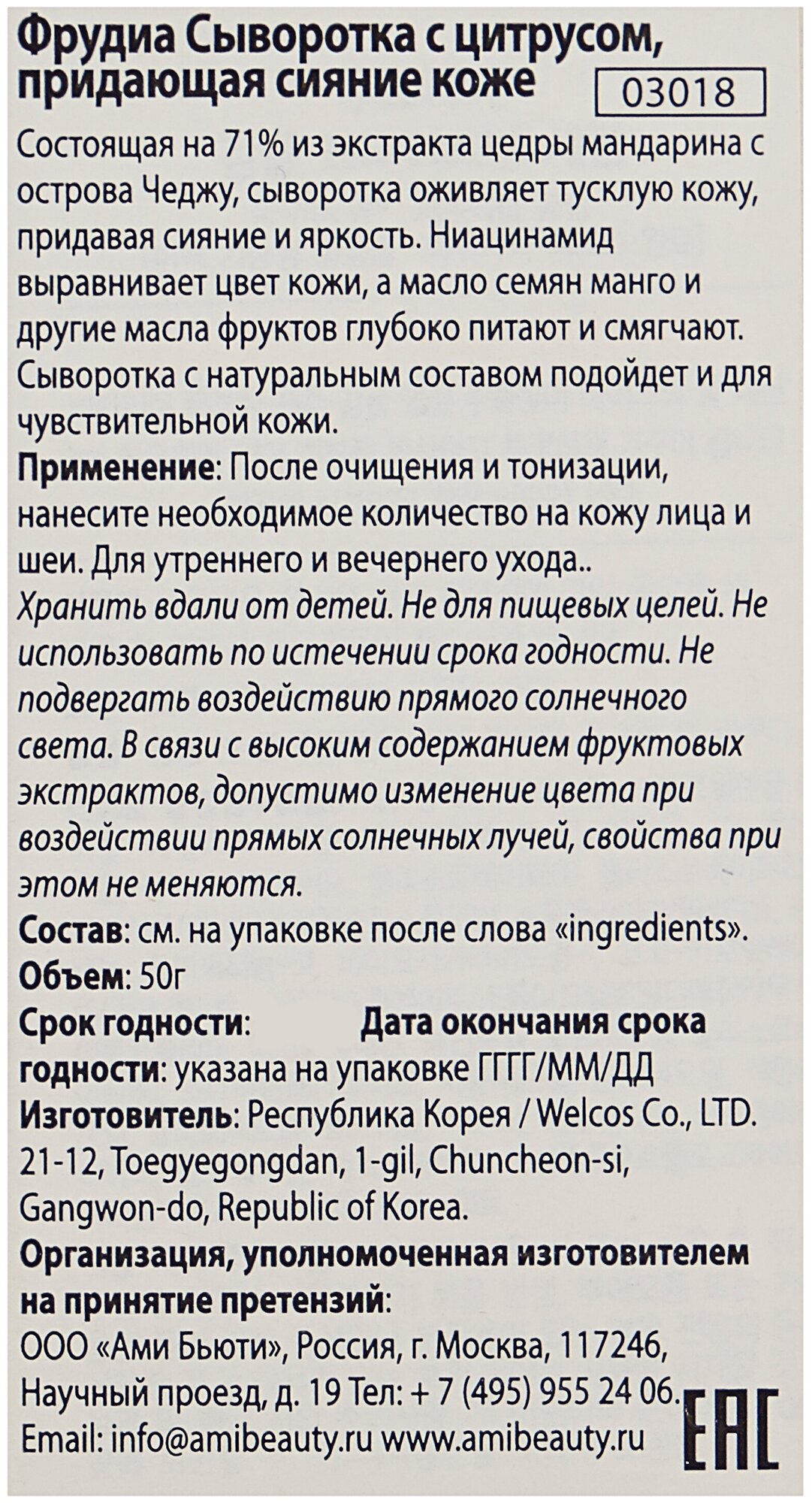 Сыворотка с цитрусом придающая сияние коже Frudia/Фрудия 50г WelcosCo., LTD. KR (1439088)