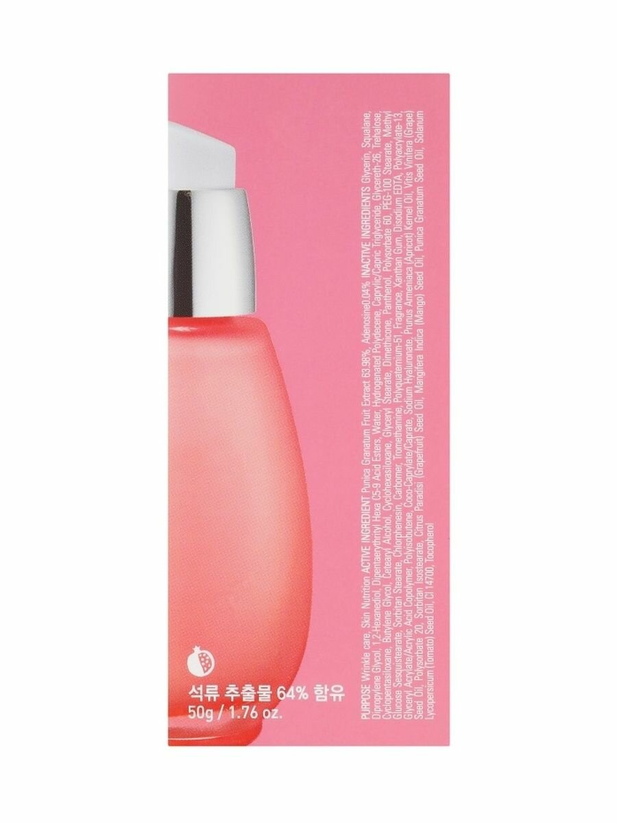 | Состав | Punica Granatum Fruit Extract (64%), Glycerin, Squalane, Dipropylene Glycol, 1,2-Hexanediol, Dipentaerythrityl Hexa C5-9 Acid Esters, Water, Hydrogenated Polydecene, Caprylic/Capric Triglyceride, TRehalose, Glycereth-26, Cyclopentasiloxane, Cyclohexasiloxane, Cetearyl Alcohol, Butylene Glycol, Glyceryl Stearate, Polysorbate 60, Panthenol, Dimethicone, PEG-100 Stearate, Sorbitan Stearate, Methyl Glucose Sesquistearate, Tromethamine, Carbomer, Polyquaternium-51, Xanthan Gum, Adenosine, Polyacrylate-13, Glyceryl Acrylate/Acrylic Acid Copolymer, Polyisobutene, Coco-Caprylate/Caprate, Sodium Hyaluronate, Grape Seed Oil, Apricot Kernel Oil, Polysorbate 20, Sorbitan Isostearate, Tomato Seed Oil, Punica Granatum Seed Oil, Mango Seed Oil, Grapefruit Seed Oil, Tocopherol, Disodium EDTA, Chlorphenesin, CI 14700, Fragrance |