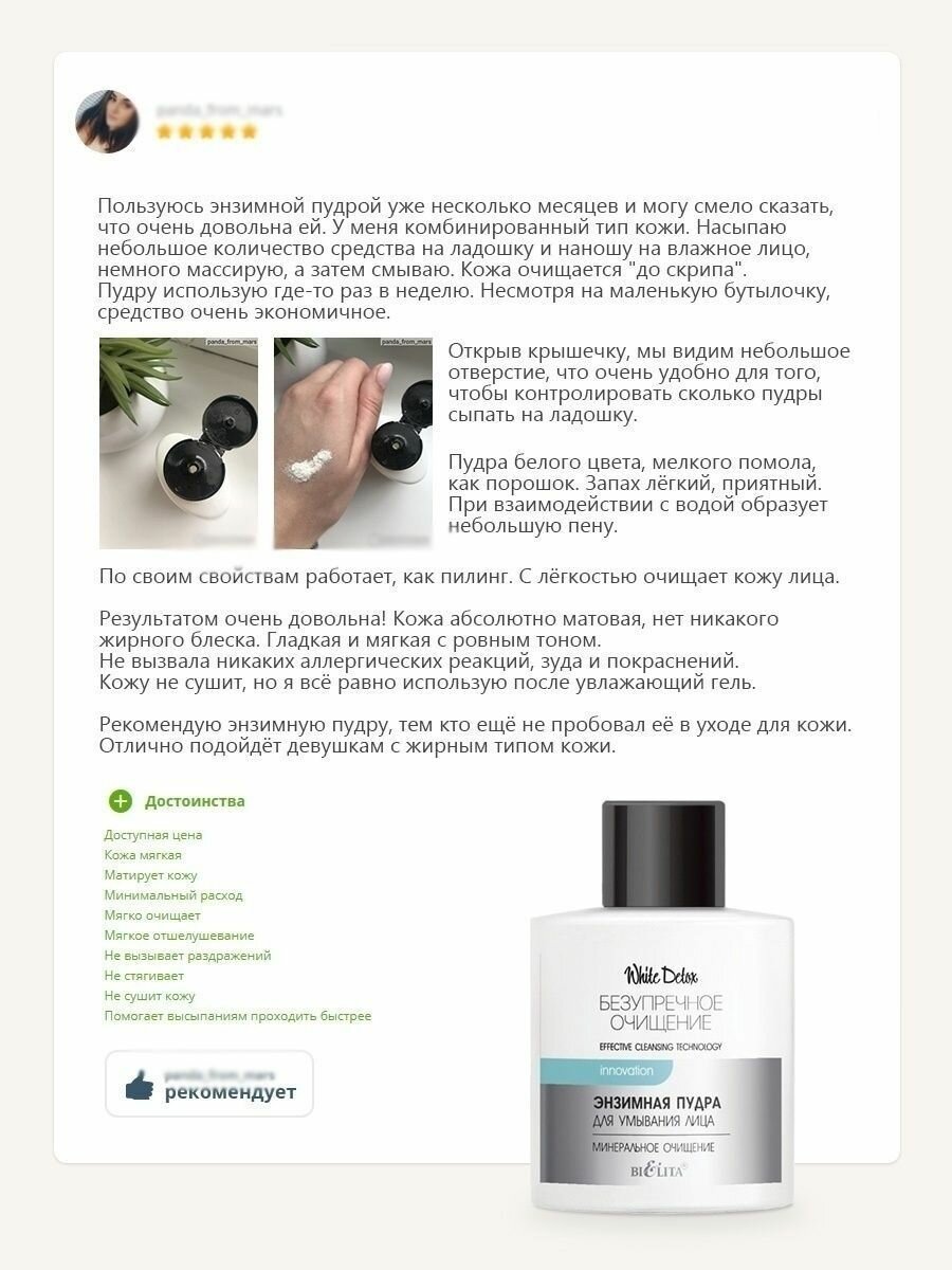 Энзимная пудра для умывания лица Минеральное очищение White Detox Белита 53 г Белита СП ООО (578415)