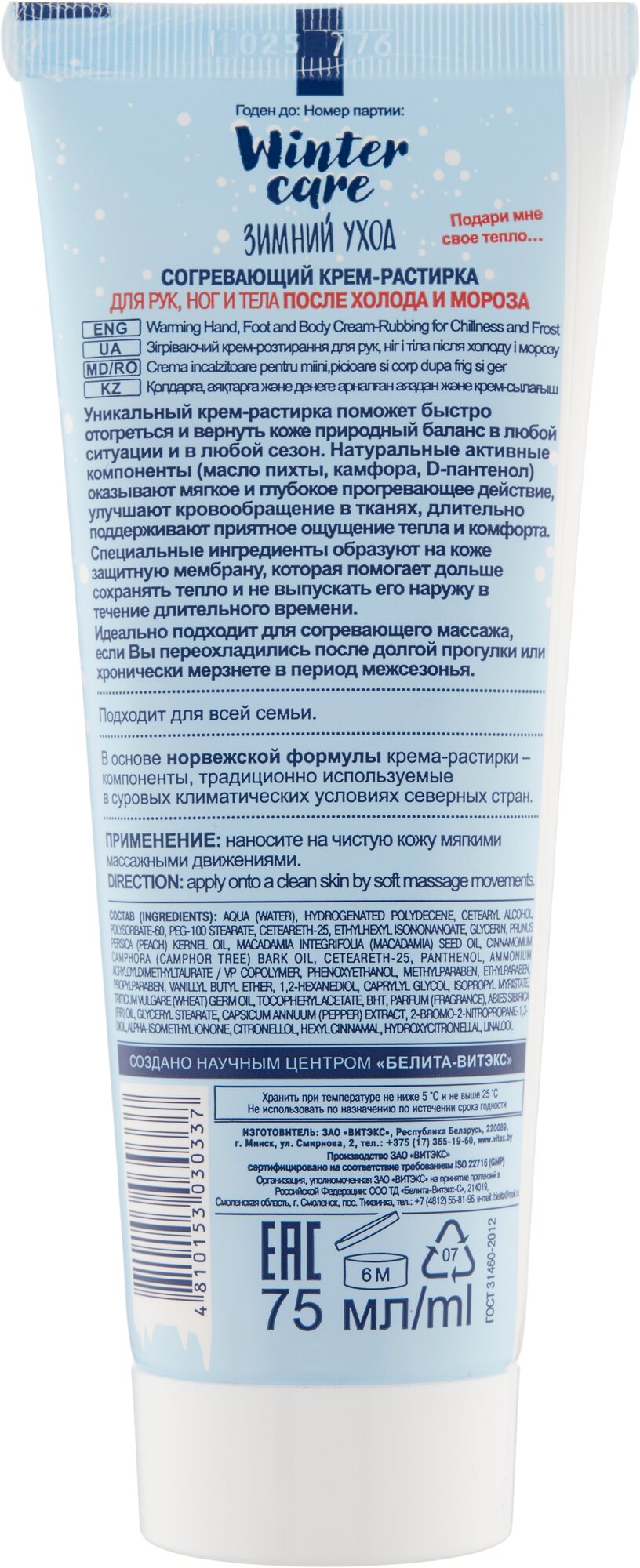 Крем-растирка для рук ног и тела Согревающий после холода и мороза Витэкс Winter care 75мл Витэкс ЗАО (502566)