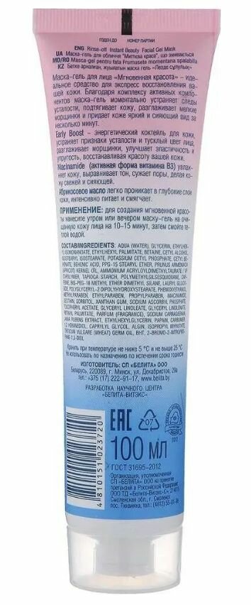 На сегодняшний день товар «Маска-гель для лица Мгновенная красота Skin sensation Белита 100 мл Белита СП ООО (578415)» можно купить с кешбеком в 1 магазине: Яндекс.Маркет