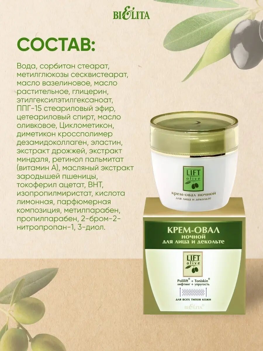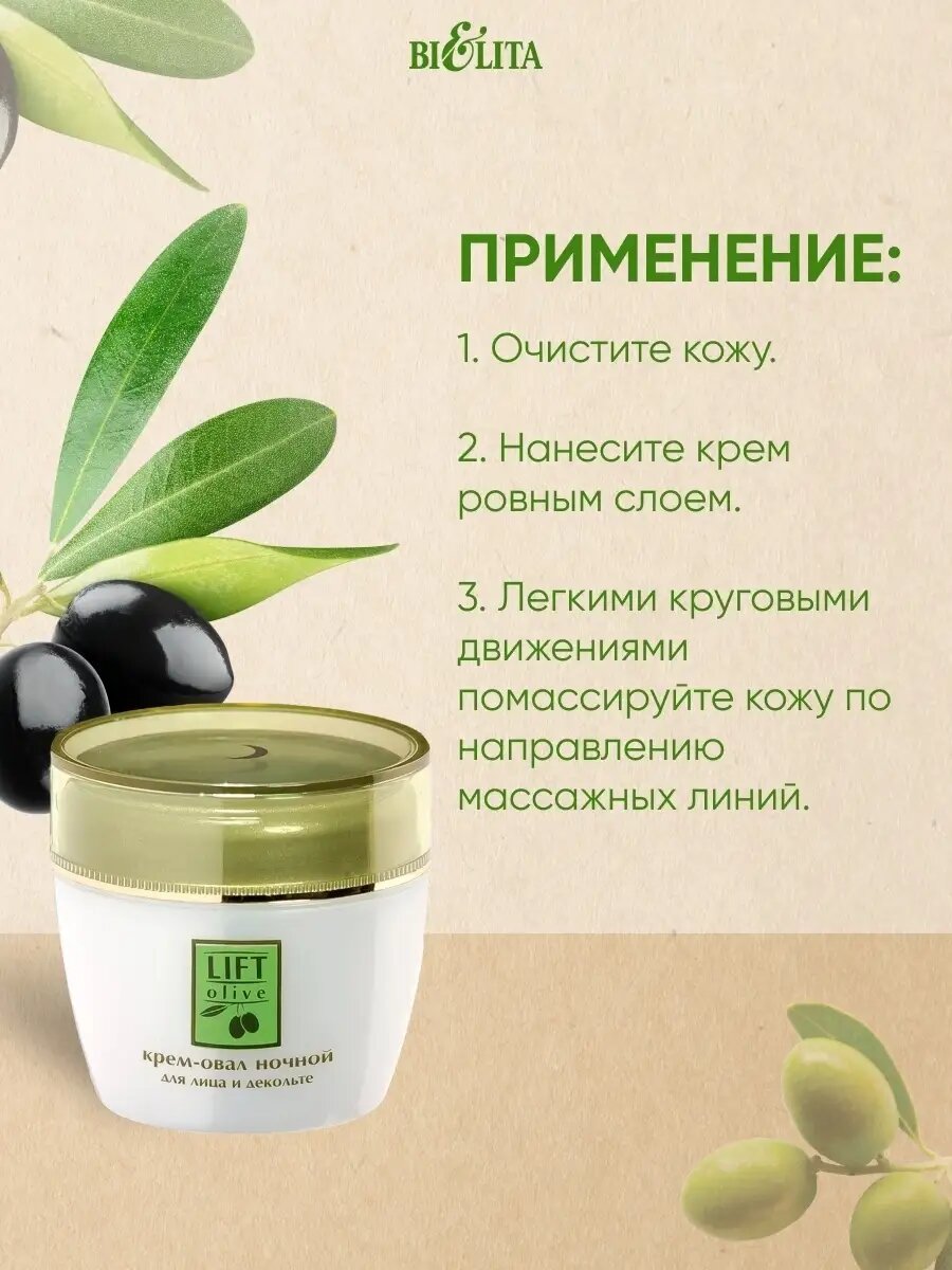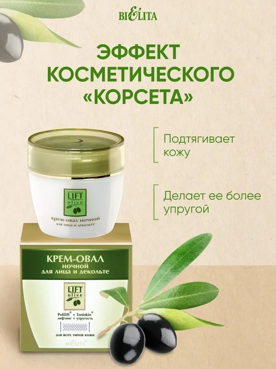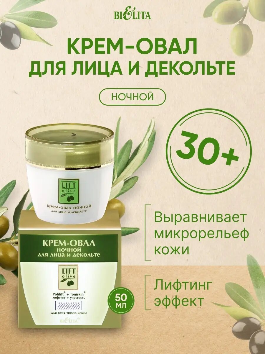 Крем-овал для лица и декольте ночной Lift olive Белита 50 мл Белита СП ООО (578415)