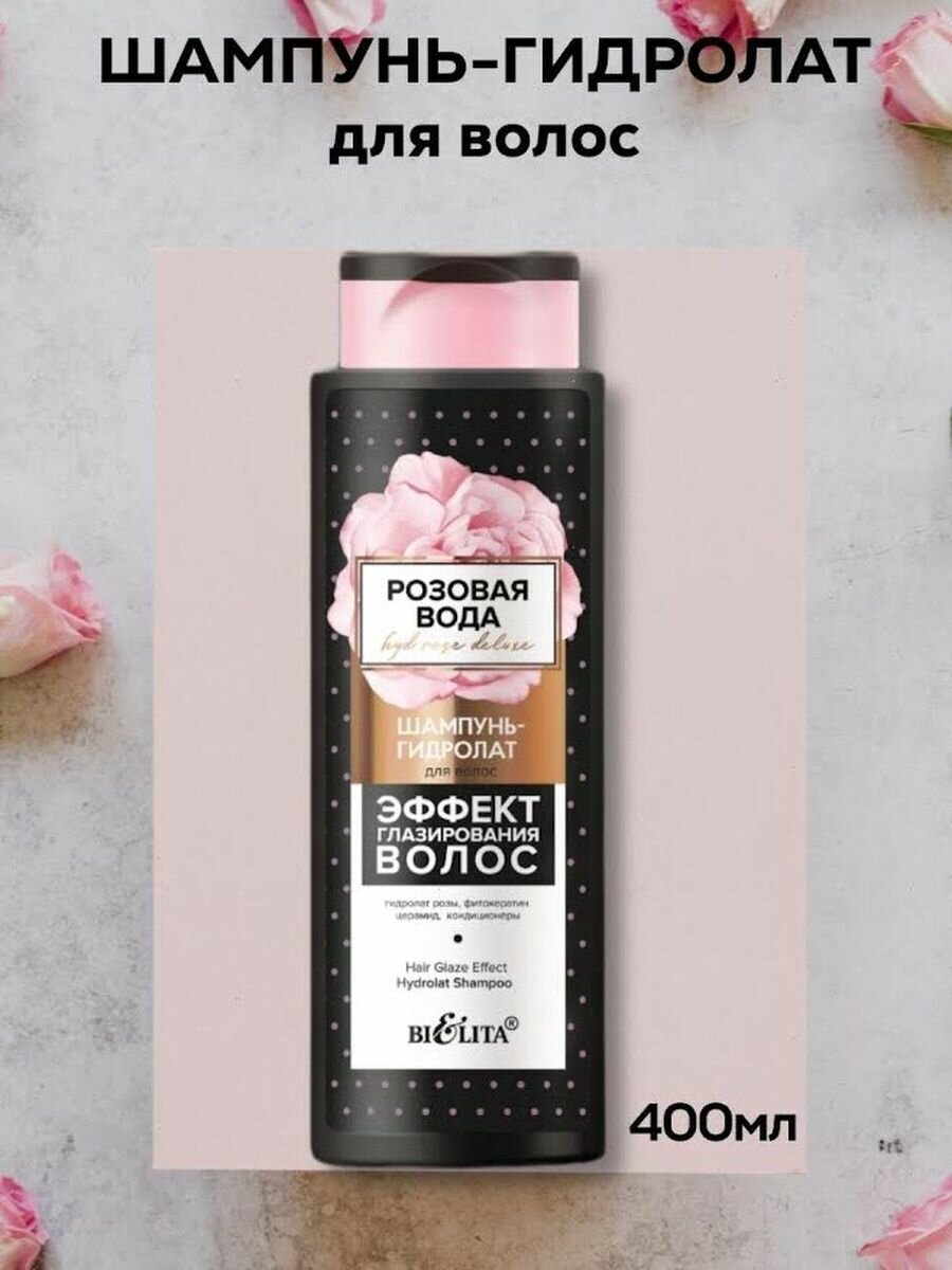 Шампунь-гидролат для волос Эффект глазирования волос HydRoseDeLuxe Белита 400 мл Белита СП ООО (578415)