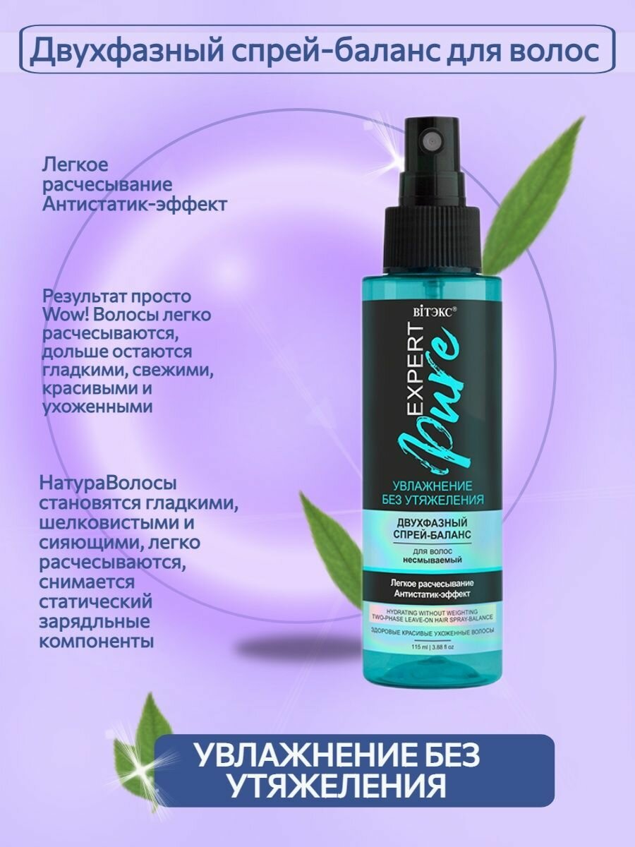 Спрей-баланс для волос двухфазный несмываемый Увлажнение без утяжеления Витэкс Expert Pure 115мл Витэкс ЗАО (502566)