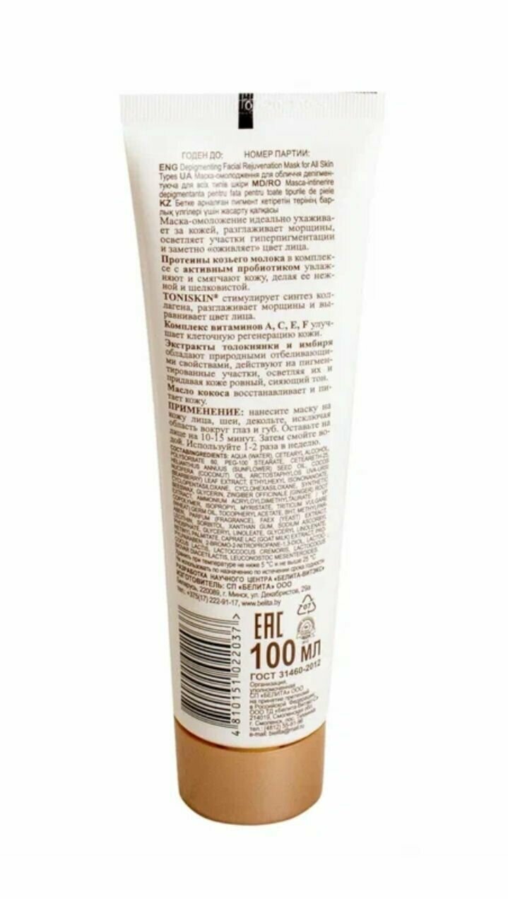 Маска-омоложение для лица депигментирующая Протеины молодости Milk Line Белита 100мл Белита СП ООО (578415)