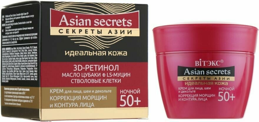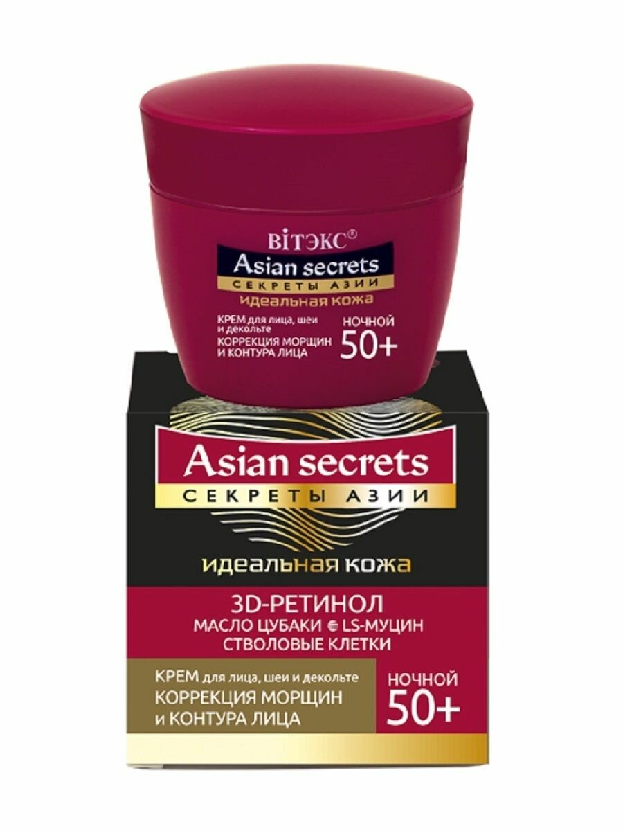Крем для лица шеи и декольте ночной Коррекция морщин и контура лица 50+ Витэкс Секреты Азии 45мл Витэкс ЗАО (502566)