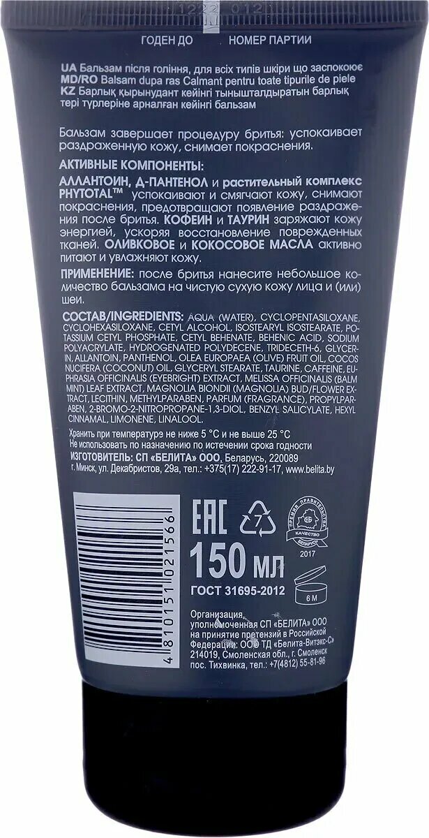 Бальзам после бритья для всех типов кожи успокаивающий menS Club Белита 150 мл Белита СП ООО (578415)