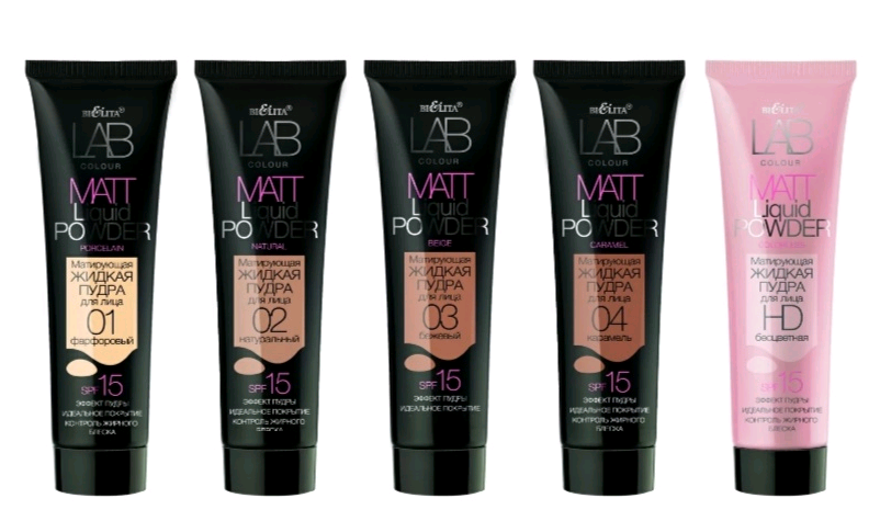 LAB colour Матирующая жидкая пудра для лица SPF 15, 30 мл. (Тон в ассортименте). Жидкая пудра для лица "Lab colour", основанная на натуральных минералах, скрывает несовершенства кожи и выравнивает ее цвет. Пудра с мягкой и бархатистой текстурой равномерно покрывает лицо нежной вуалью, убирая жирный блеск. Создает невесомое матовое покрытие, которое не ощутимо на коже, позволяет ей дышать и не забивает поры. Жидкая пудра обогащена комплексом Sebaryl, который устраняет жирный блеск, уменьшает поры. Объем: 30 мл. Способ применения: Нанесите жидкую пудру на чистую кожу лица, равномерно распределите.