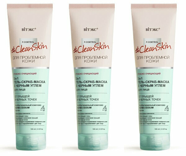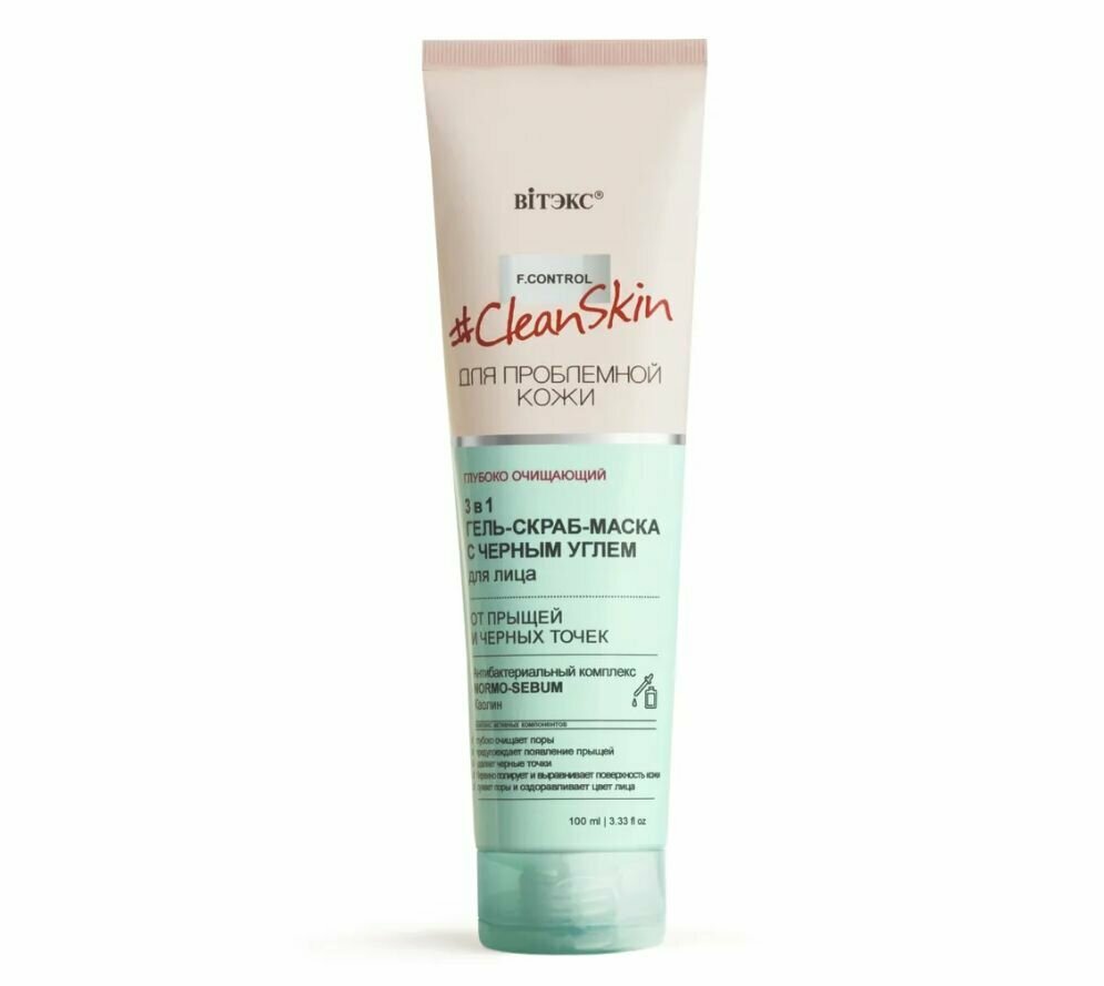 Гель-скраб-маска для лица от прыщей и черных точек с черным углём Витэкс Clean skin 100мл Витэкс ЗАО (502566)