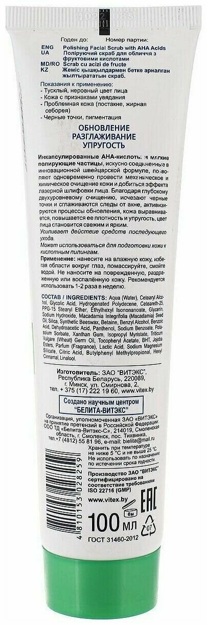 Скраб для лица Полирующий с фруктовыми кислотами Витэкс Skin AHA Clinic 100мл Витэкс ЗАО (502566)