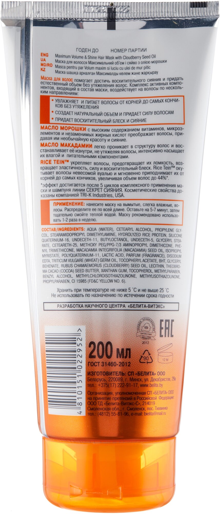 Маска для волос с маслом морошки Секрет сияния Белита 200 мл Белита СП ООО (578415)