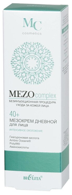 Дневной мезокрем эффективно разглаживает морщины, увеличивает упругость и эластичность кожи, обеспечивает лифтинг-эффект, глубоко увлажняет кожу и восстанавливает оптимальный уровень увлажненности, активизирует клеточное обновление, улучшает цвет лица, делает кожу более гладкой и сияющей.