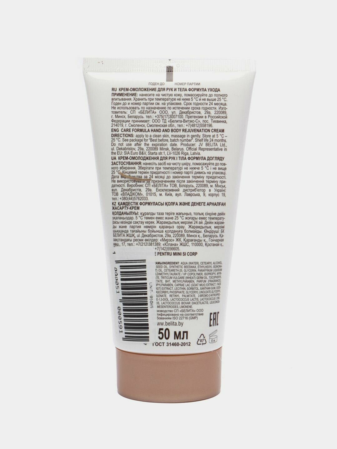 | Состав | вода, цетеариловый спирт, масло Helianthus Annuus (подсолнечное), воск пчелиный синтетический, этилгексилизононаноат, масло Cocos Nucifera (кокоса), цетеарет-25, глицерин, масло вазелиновое, сополимер винилпирролидона и акрилоилдиметилтаурата аммония, изопропилмиристат, масло зародышей Triticum vulgare (пшеницы), токоферилацетат, БГТ, метилпарабен, парфюмерная композиция, пропилпарабен, экстракт козьего молока, экстракт дрожжей, глицерин, лецитин, сорбитол, ксантановая камедь, аскорбилфосфат натрия, токоферилацетат, глицериллинолеат, глицериллиноленат, ретинилпальмитат, 2-бром-2-нитропропан-1,3-диол, Lactoccocus Lactis, Lactoccocus Cremoris, Lactococus Biovar Diacetilactis, Leuconostoc Mesenteroides, лимонен |
