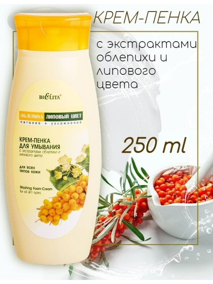 Крем-пенка для умывания для всех типов кожи Облепиха Липовый цвет Белита 250 мл Белита СП ООО (578415)
