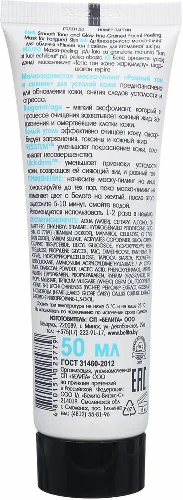 Маска-пилинг для лица Ровный тон и Сияние White Detox Белита 50 мл Белита СП ООО (578415)
