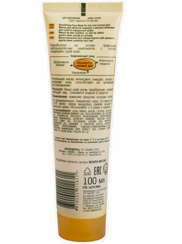 Маска для лица питательная Облепиха Липовый цвет Белита 100 мл Белита СП ООО (578415)