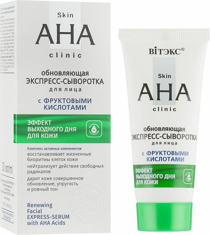Экспресс-сыворотка для лица Обновляющая с фруктовыми кислотами Витэкс Skin AHA Clinic 30мл Витэкс ЗАО (502566)